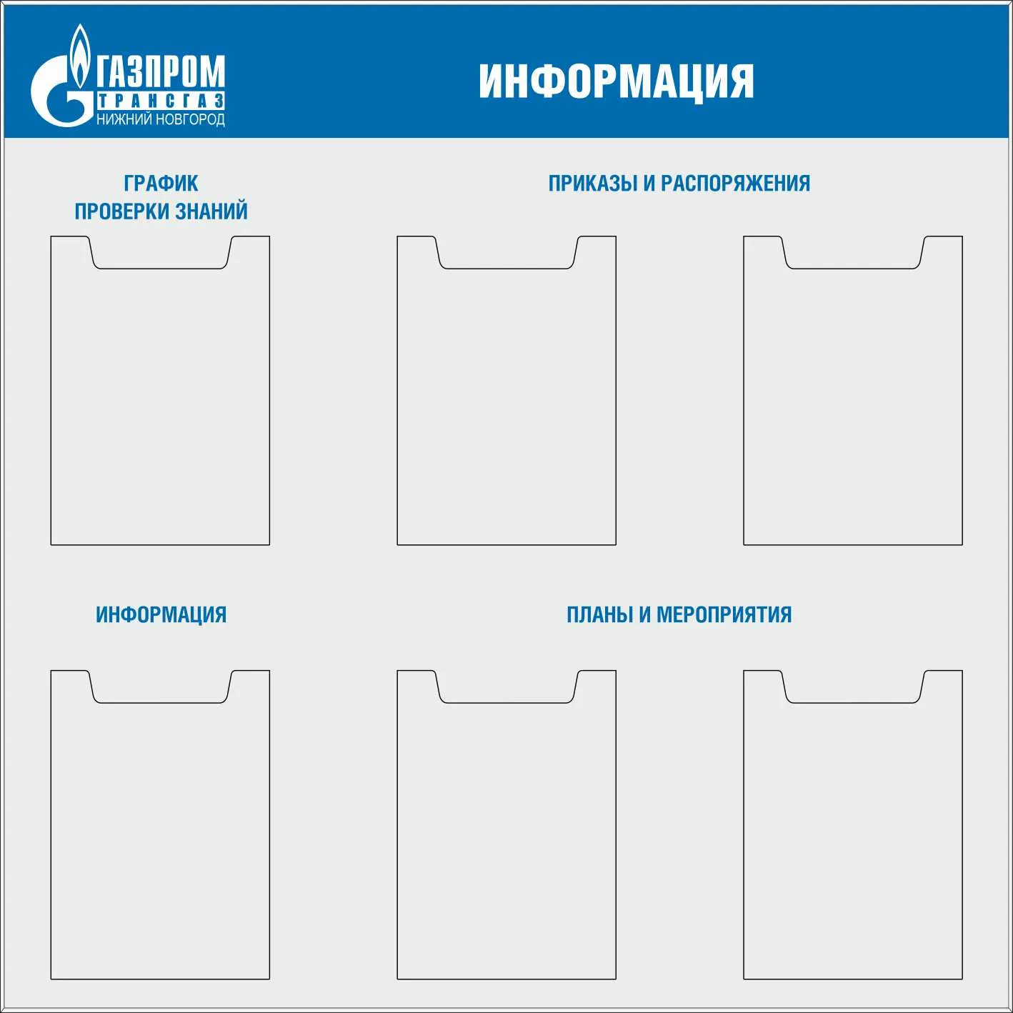 Стенд Информация, 7 карманов вертикальных плоских формата А4, 1 карман плоский 700х305, карманы с надписями (1500х1000; Пластик ПВХ 4 мм, пластиковый профиль; )