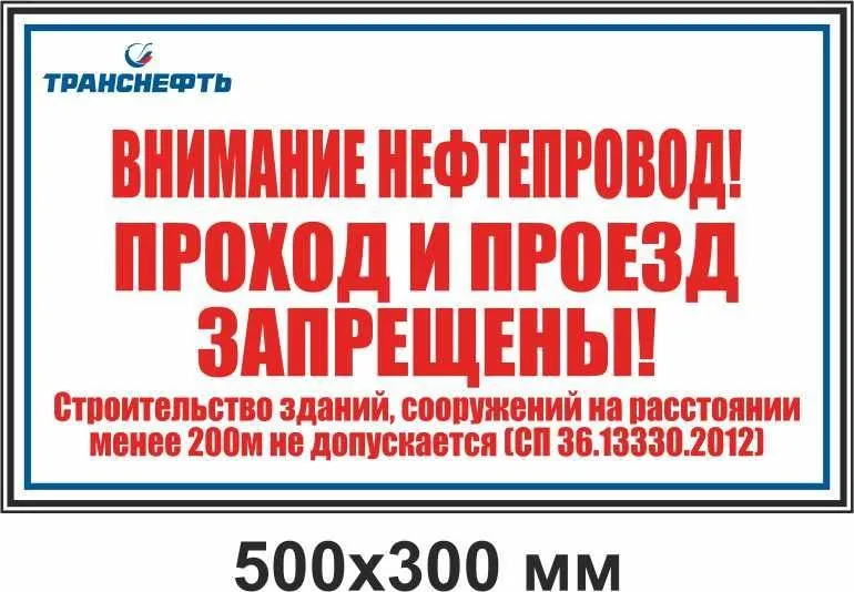 Щит-указатель предупреждающего знака "Внимание нефтепровод! Проход и проезд запрещены!" (направление отдела эксплуатации нефтепроводов и нефтебаз ПАО "Транснефть").